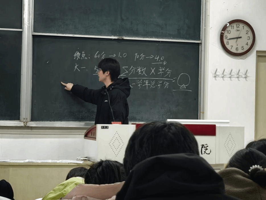 随后,2025级辅导员王泽铭老师进行了系统资助政策解读。他详细介绍了以“奖、助、贷、勤、补、免”为主体的多元资助体系,清晰说明了各项政策的申请条件与流程,并强调了资助工作“济困助学”与“立德树人”相结合的核心宗旨,引导学生正确利用政策资源,规划未来发展。